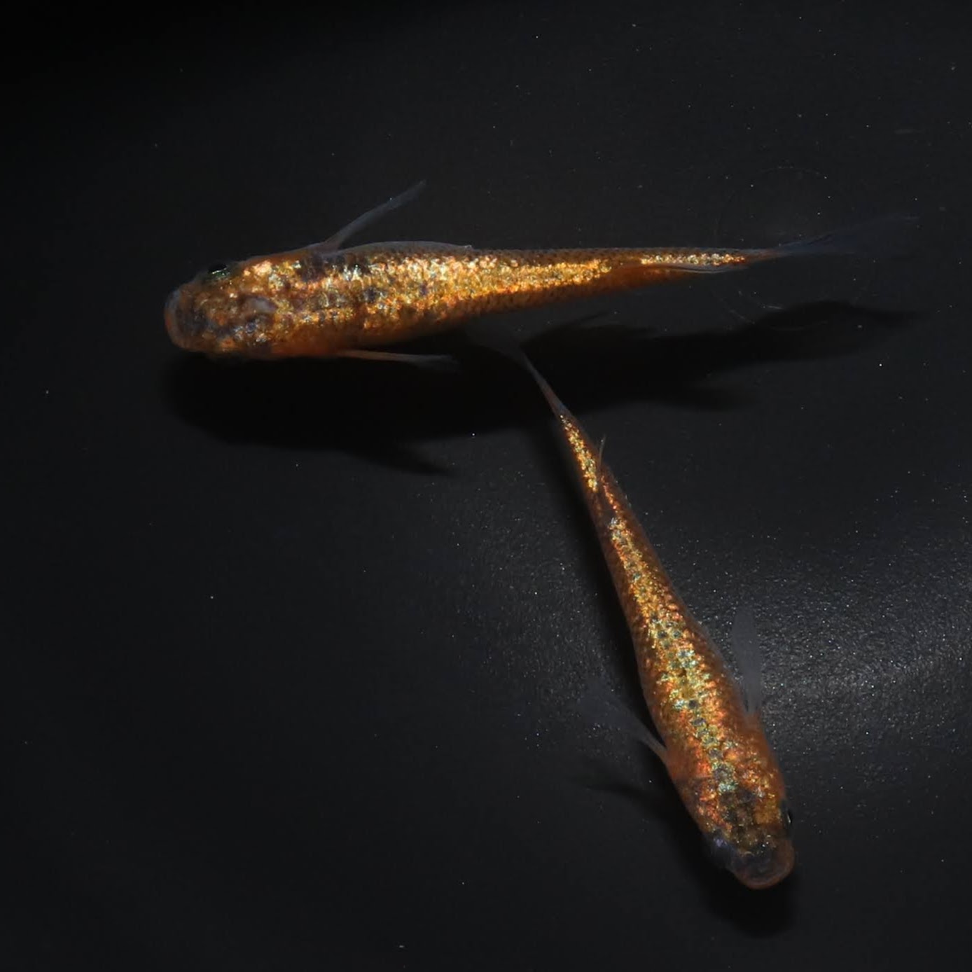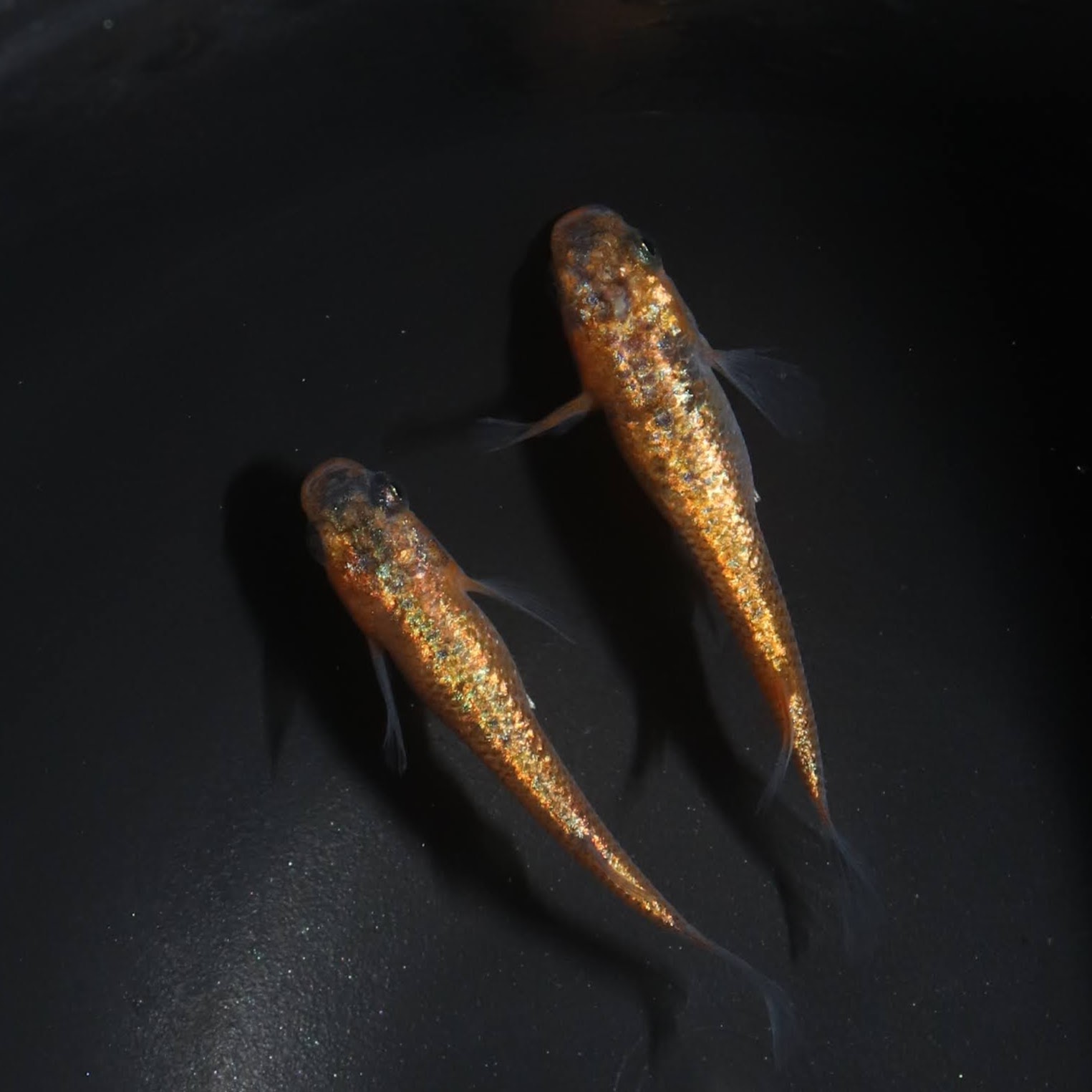 他のラメメダカと比較すると、ラメが体を覆いつくすようなラメになります。